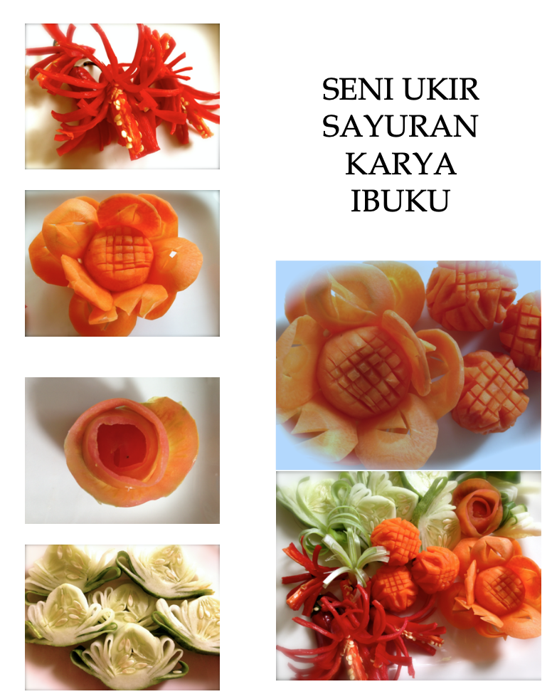 Selain memasak, Ibu juga mahir membuat korsase dari sayur dan membuat hantaran untuk lamaran pengantin gaya kuno.